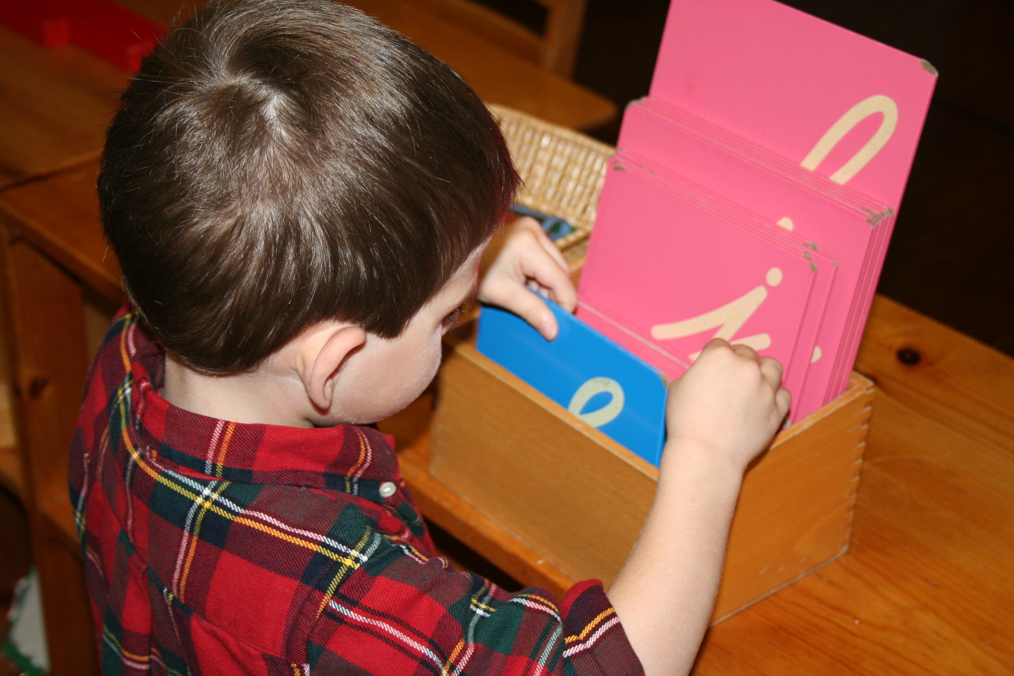 I love watching a child standing at the sandpaper letter box, making the sound of each letter to himself or herself as they file through them, looking for ones they know and new ones they want to learn. I think it sets our children up with a little method they can employ for tackling information in the world for the rest of their lives!